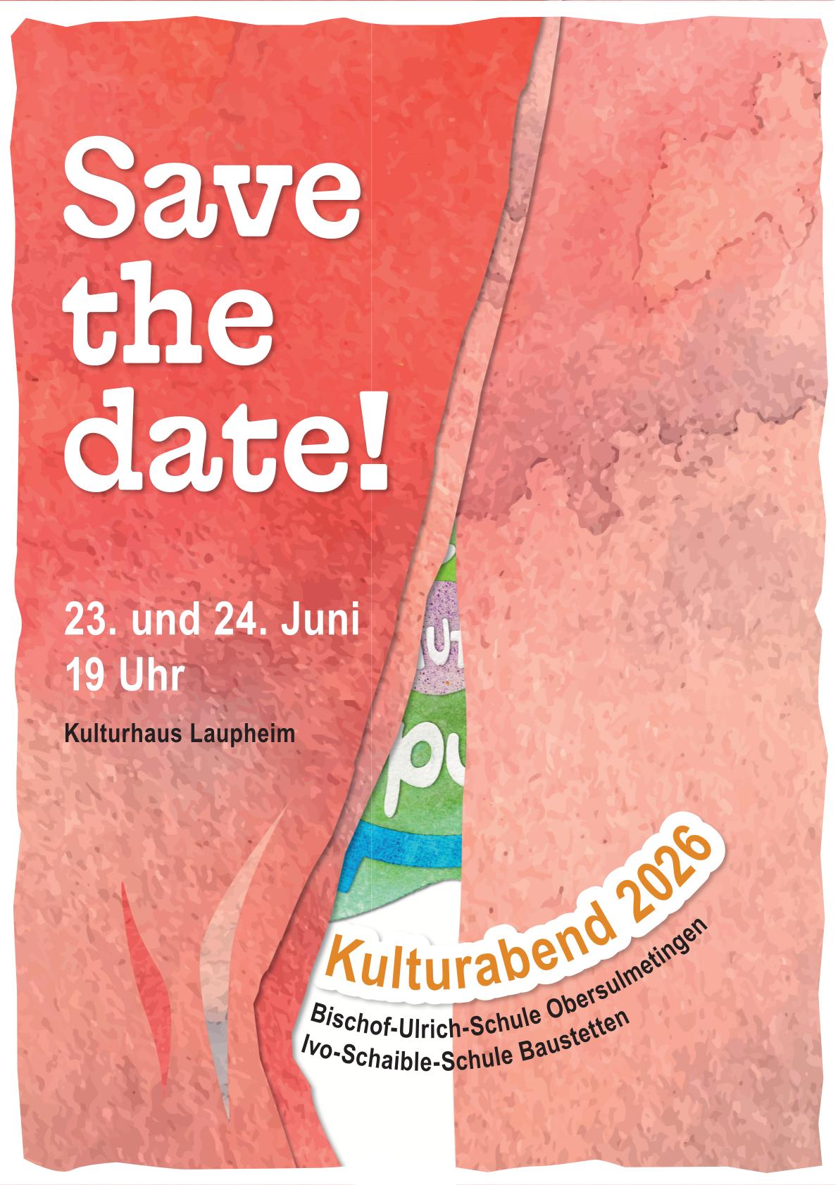 „Gemeinsam dem Glück auf der Spur“ ist das Motto des Kulturabends 2026, den die Bischof-Ulrich-Grundschule Obersulmetingen und die Ivo-Schaible-Grundschule Baustetten präsentieren. Geboten wird ein abwechslungsreiches und unterhaltsames Programm mit Darbietungen aus den Bereichen Musik, Tanz und Spiel. Das erstaunlich hohe Niveau der Aufführungen lässt vergessen, dass keine Profis auf der Bühne stehen, sondern engagierte und begeisterte Kinder und Jugendliche aus den Schulen unserer Stadt.Paradekonzert der Stadtkapelle